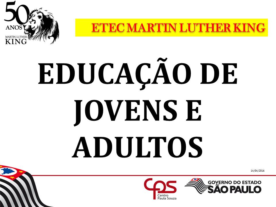 Online - O aluno tem vínculo com a instituição de ensino como polo de apoio aos exames presenciais e usufrui dos benefícios básicos estudantis (carteirinha estudantil que propicia a meia entrada em eventos culturais e possíveis contratos de estágio). A documentação, emissão de parecer, declarações, assinaturas de contratos são de competência do Grupo de Estudo de Educação a Distância (GEEAD). Nesse caso, os alunos da Etec Martin Luther King são apoiados por tutores que têm a incumbência de auxiliá-los em dúvidas técnicas quanto à navegação e, ligados ao Grupo de Estudo de Educação a Distância (GEEAD), possuem tutores que orientam sobre dúvidas pedagógicas. A Etec Martin Luther King conta com 9 turmas e 4 tutores de apoio local.Nesta modalidade a Etec Martin Luther King oferece os cursos de SECRETARIADO; COMÉRCIO; ADMINISTRAÇÃO e GUIA DE TURISMO.